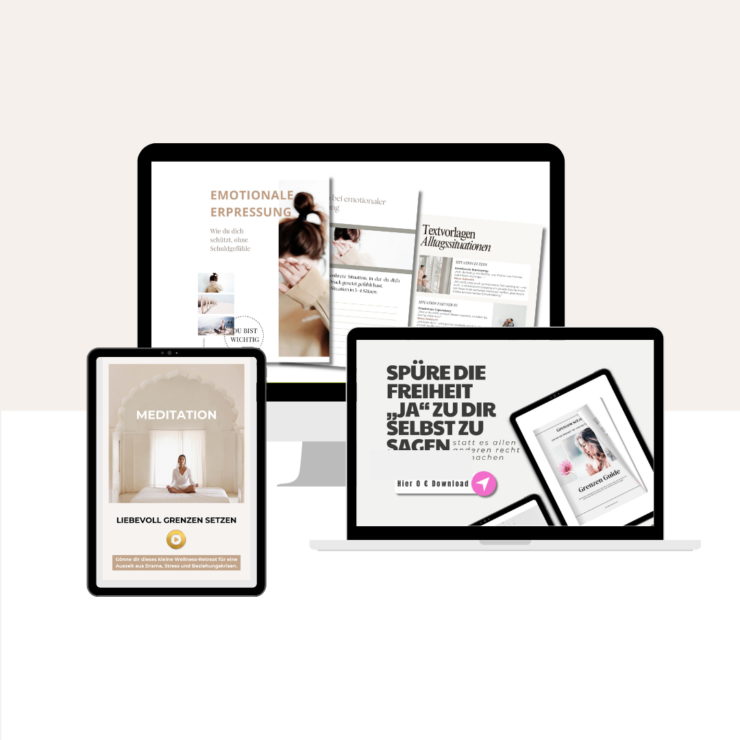 Hole dir dein kraftvolles Bundle aus der Meditation „Grenzen setzen“, dem Flipbook „Grenzen Guide“ und einem liebevoll gestalteten Workbook „Emotionale Erpressung meistern“.