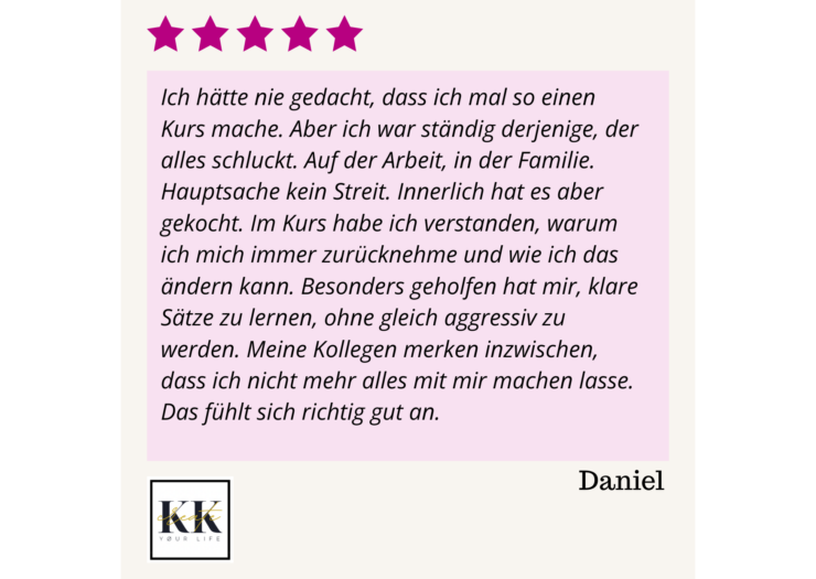 Du fühlst dich erschöpft, übergangen und gefangen in einem Leben, das sich nicht wirklich nach dir anfühlt. Deine Beziehungen bleiben angespannt, du fühlst dich ausgelaugt und deine eigenen Bedürfnisse bleiben auf der Strecke. Jeder Tag bringt mehr Frustration, mehr Unsicherheit und das quälende Gefühl, dass du beruflich und in deinen Beziehungen nicht für dich selbst einstehst.