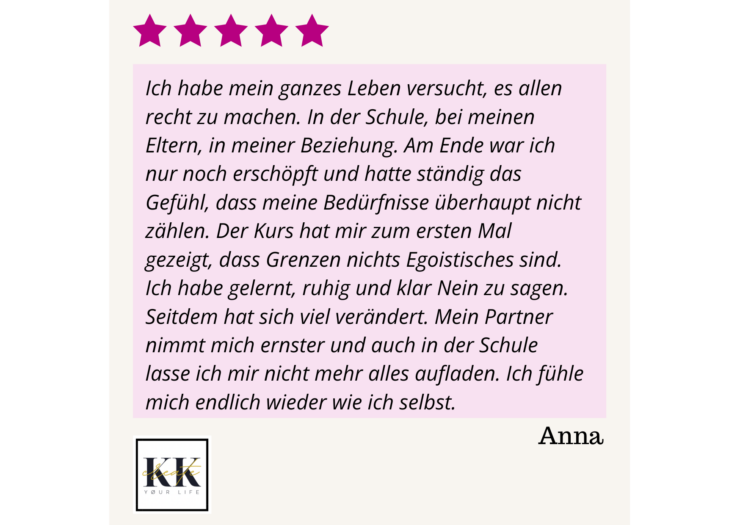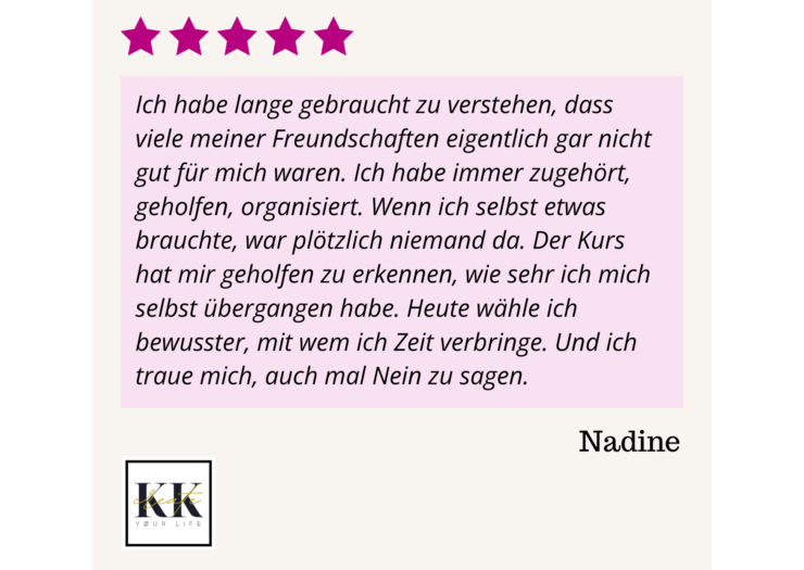 Wenn du lernen möchtest, Grenzen zu setzen, Nein zu sagen ohne Schuldgefühle, endlich aus toxischen Beziehungsmustern auszusteigen, bewusster deine Beziehungen zu gestalten und dich im Job selbstbewusster zu präsentieren, dann bist du hier genau richtig.