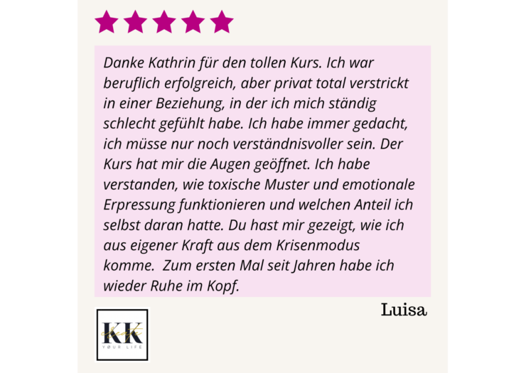 Erlaube dir wieder die Freiheit du selbst zu sein. Mit einem neuen Selbstbewusstsein und neuem Verständnis für toxische Dynamiken und wiederkehrende Muster in deinen unglücklichen Beziehungen wirst du dich aus diesen befreien und selbstbestimmt glücklichere Beziehungen gestalten können.